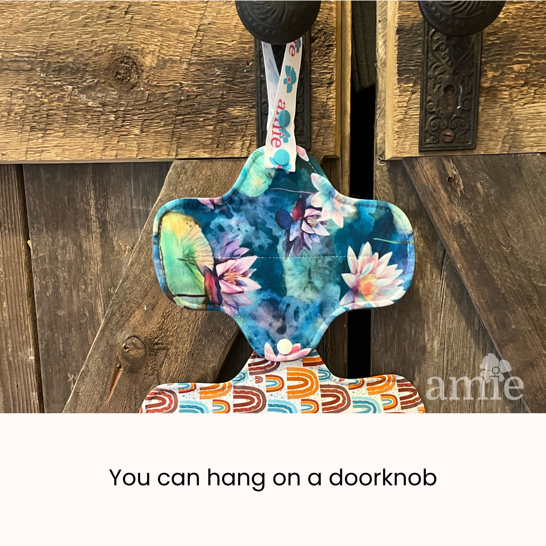 It allows my pretty pads to dangle over a well positioned towel after I sweater-dry the handwashed Amie Pads. We have a drought here in Nova Scotia and dry well so all laundry is done by hand. I should have bought more pads to allow more time between running out. The top or bottom of the strap has 2 of the same fasteners beside each other and I’m not sure what it’s for. I gerry rig it to a pant hanger and have it with 2 pads attached over my towel in a private area. Thank you for asking. Your package arrived with your personal notes and that was a nice touch. Lynn